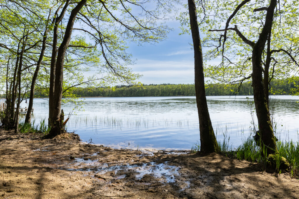 Domki znajdują się dosłownie kilka kroków od jeziora.